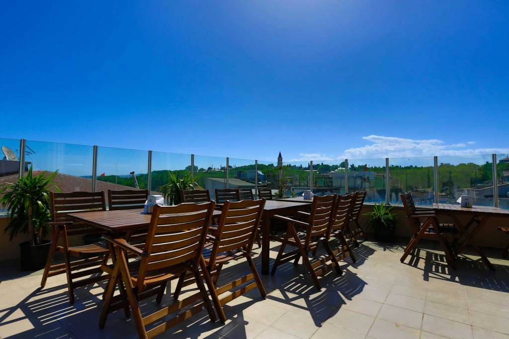 Our terrace offers the views of the Bosphorus and surrounding mosques. Do not miss watching the sun goes down in to the Golden Horn at Sunset. To read your book accompanied by the seagulls.